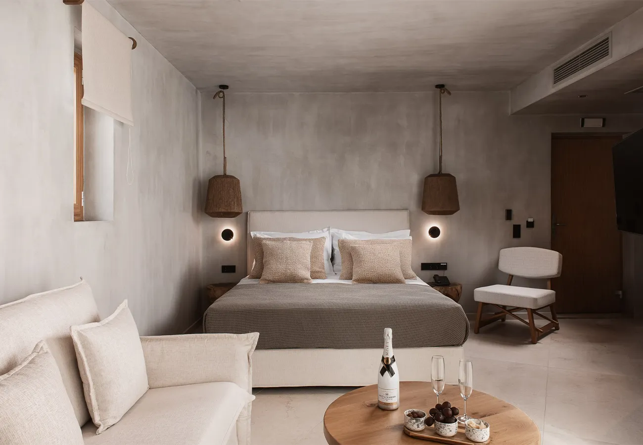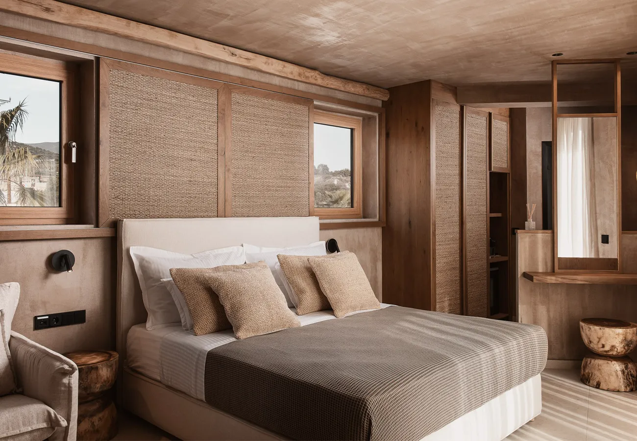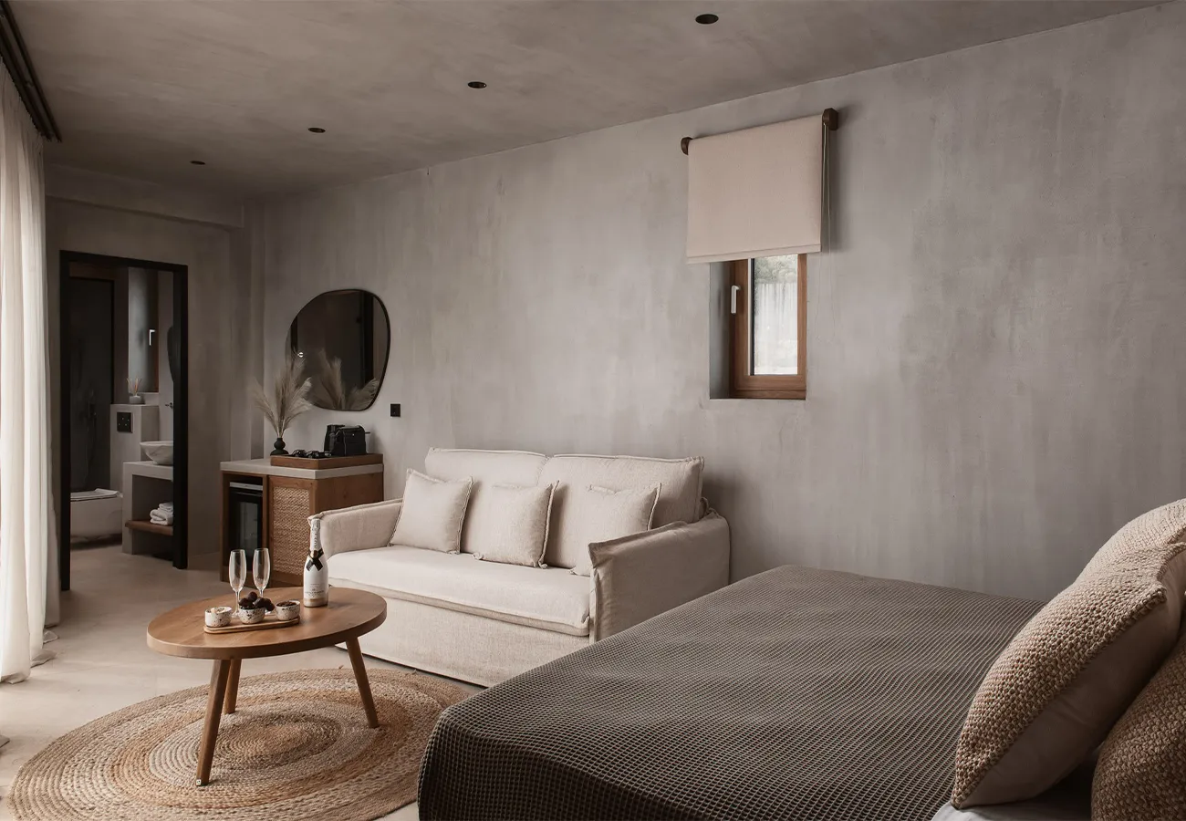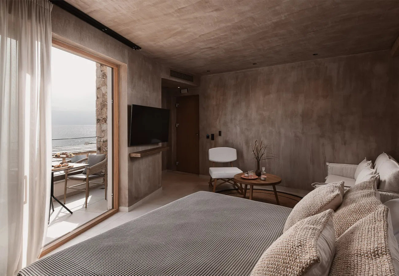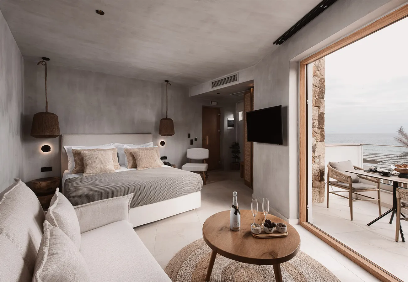 Τα ευρύχωρα Executive δωμάτιά μας, με εμβαδόν 27-31 τετραγωνικών μέτρων, βρίσκονται στον τελευταίο όροφο του δεύτερου κτιρίου, ακριβώς πάνω από το lounge της πισίνας μας. Αυτά τα δωμάτια προσφέρουν την καλύτερη θέα στη θάλασσα και γήινους χρωματικούς συνδυασμούς, σε συνάρτηση με minimal αισθητική. Κάθε δωμάτιο διαθέτει ένα άνετο διπλό κρεβάτι και έναν καναπέ που μπορεί να μετατραπεί σε κρεβάτι, φιλοξενώντας έως και τρία άτομα. Το μπαλκόνι προσφέρει εκπληκτική θέα στη θάλασσα, όπου μπορείτε να χαλαρώσετε και να απολαύσετε την ομορφιά του Αιγαίου Πελάγους.